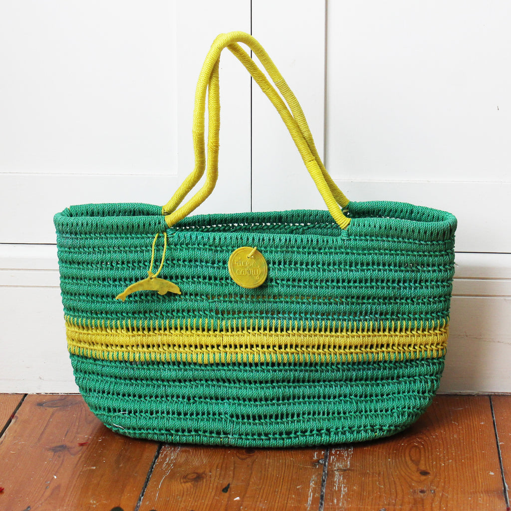 These market bags are handwoven from discarded fishing nets that wash up on the shores of Sri Lanka. It is a painstaking process to gather, untangle, sort and weave the nets into these beautiful tote bags, perfect for shopping trips to the market. Each one comes with a little sea-inspired charm made from recycled plastic bottle tops, such as a shark or a turtle. Re-using waste products and providing a fair wage for the women who weave them - what could be better?