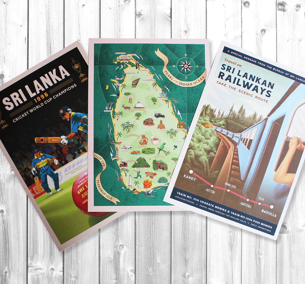 Printed from artworks created by a collective of Sri Lankan artists, these charming vintage-style A3-sized prints will remind you of holidays spent in Sri Lanka, or time living there, or as travel inspiration. They are printed on high quality, thick card with a matt finish which you can frame as you like.